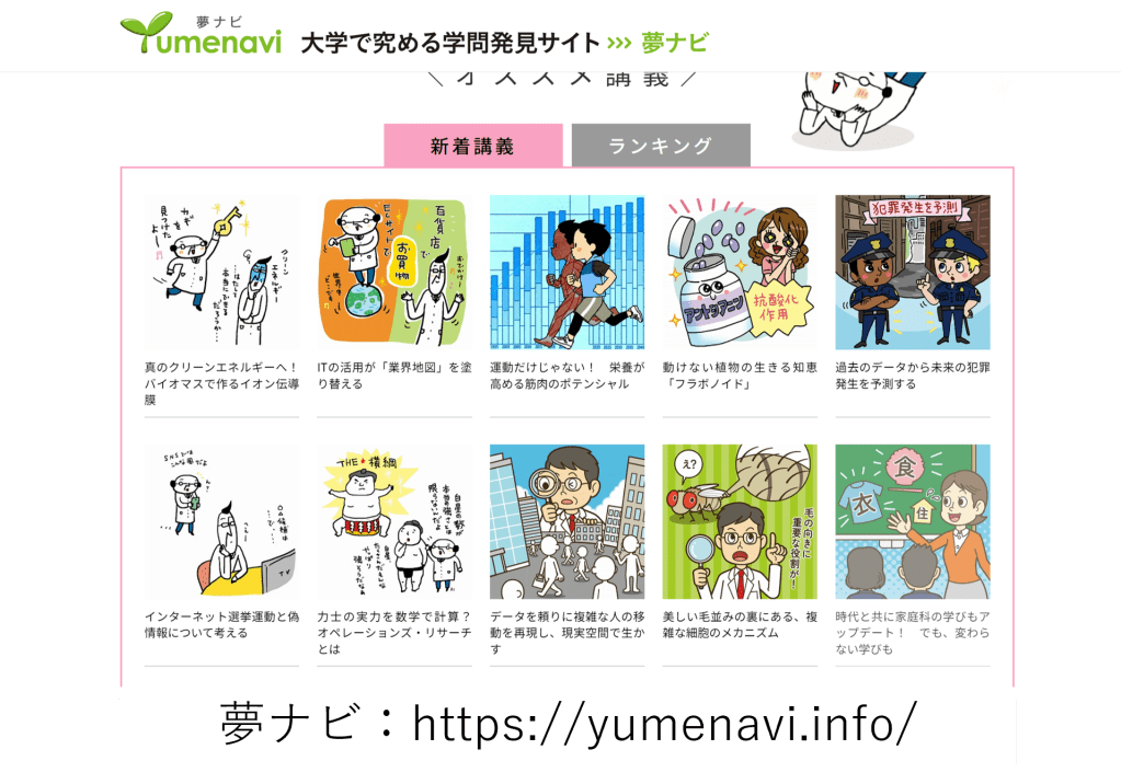 高校生向けの学問紹介サイト「夢ナビ」に、研究紹介ページを作成していただきました。詳細はこちら。